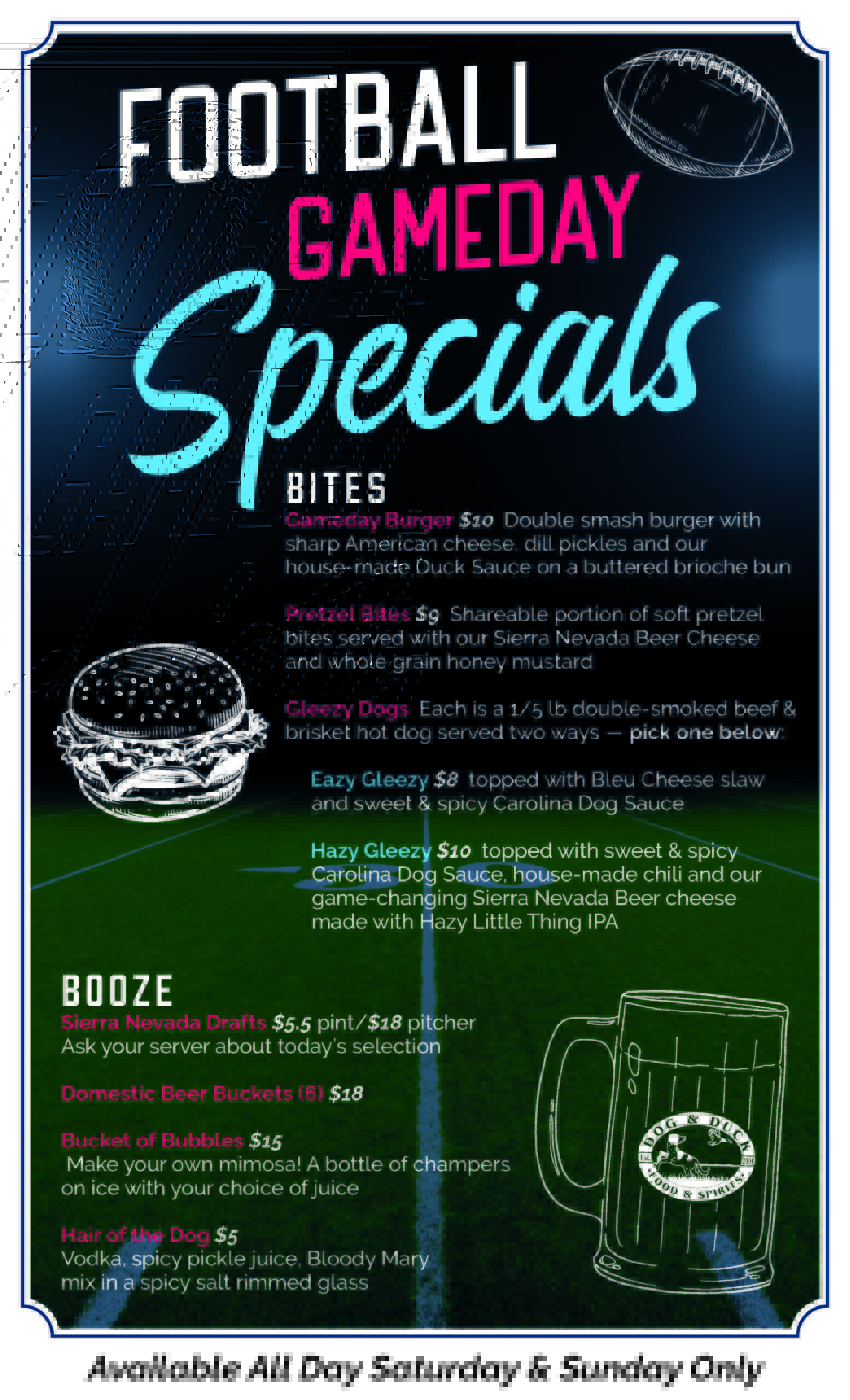 Join us every Saturday & Sunday for ALL the big games and some seriously delicious Game Day eats.