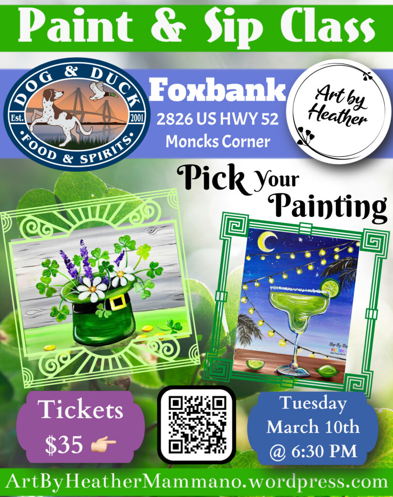 Join us for Paint & Sip at Dog & Duck MOCO! Mark your calendar for Tuesday, March 10, at 6:30 PM and enjoy a night filled with great company, delicious food, and your favorite drinks. Whether you’re a seasoned artist or just in it for the fun, this is the perfect way to unwind and get creative. Grab your friends, sip something tasty, and leave with your own masterpiece. Spots fill up fast. Sign up today.