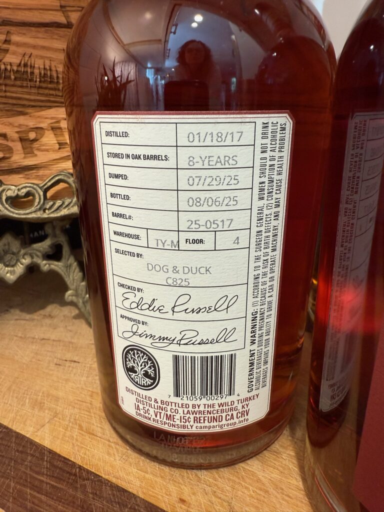 Our Russell’s C825 is a bold, smooth bourbon. Unlike the Russell’s Batch you’ll find on shelves, this single barrel pick is exclusive to Dog & Duck and offers a one-of-a-kind flavor that can’t be replicated.